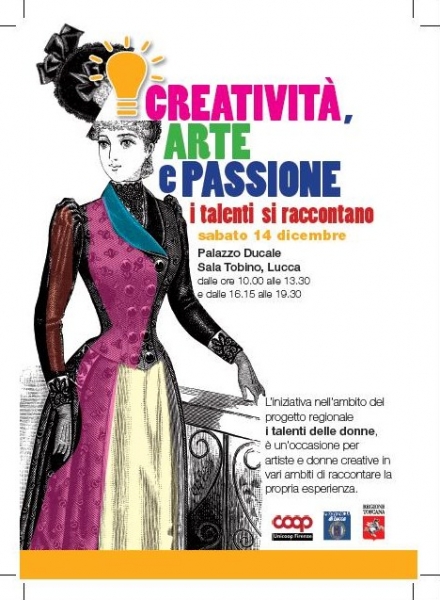 I talenti delle donne sono protagonisti degli incontri in programma sabato 14 dicembre a Palazzo Ducale. L'iniziativa – promossa dalla Provincia di Lucca, dalla Coop Toscana e dalla Regione – nasce nell'ambito del progetto regionale 'I talenti delle donne' e, a Lucca, è incentrato sul tema «Creatività , arte e passione».