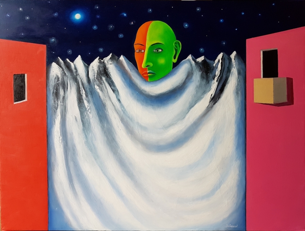 Il suo gusto per il gioco si integra con quell’ironia esistenziale legata al suo disincanto per la vita. Ironia intesa come prendere le distanze, porre un’alternativa, concepire e definire un limite a sé e alle cose: la tentazione di chiedergli spiegazioni sui suoi dipinti è elevata, ma come ben sappiamo, un mago non svela mai i suoi trucchi.