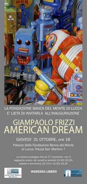 “American Dream”: su tela il sogno americano di Giampaolo Frizzi. Inaugura questo giovedì (31 ottobre) alle 18 nel Palazzo delle Esposizioni della Fondazione Banca del Monte di Lucca al numero 7 di piazza San Martino, “American Dream", la personale del giovane pittore lucchese Giampaolo Frizzi, in cui si farà apprezzare per la sua straordinaria tecnica iperrealista.