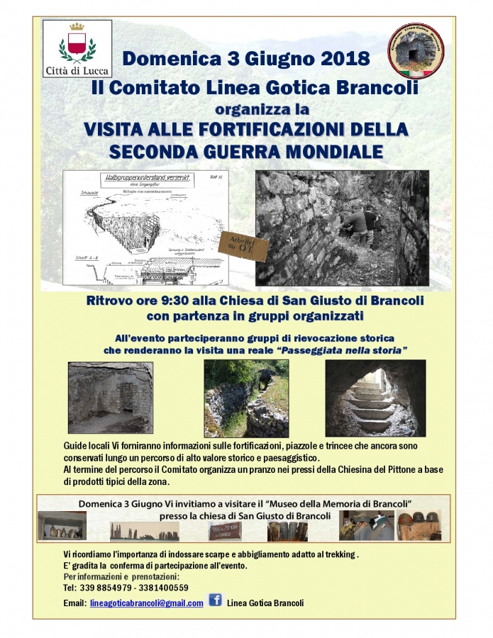 Il giorno della Visita alle fortificazioni sarà possibile inoltre visitare il “ Museo della Memoria di Brancoli”, nei pressi della Chiesa di San Giusto di Brancoli, dove sono stati raccolti molti oggetti, documenti, fotografie , uniformi risalenti alla II Guerra Mondiale in particolar modo specifici delle nostre zone.