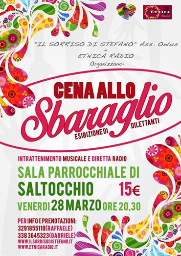 Venerdì 28 marzo alle 20.30, presso la sala parrocchiale di Saltocchio, una cena con musica e spettacolo di "dilettanti allo sbaraglio" per sostenere le attività della tua web radio e dell'associazione.