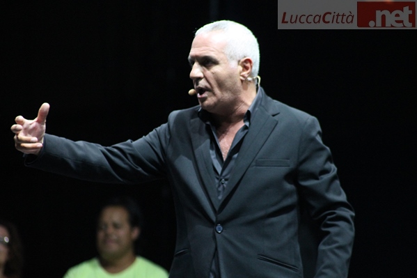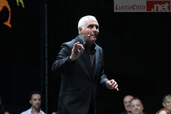 Il comico nato a Firenze ma versiliese di adozione, ha intrattenuto la piazza con battute e sketch che lo hanno reso celebre.