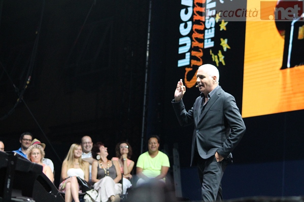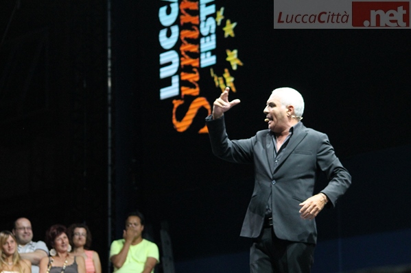 Dissacrante, pungente ed ironico Giorgio Panariello ha saputo far ridere, ma anche riflettere il pubblico, calcando magistralmente il palco del Lucca Summer Festival ieri sera (venerdì 18 luglio).