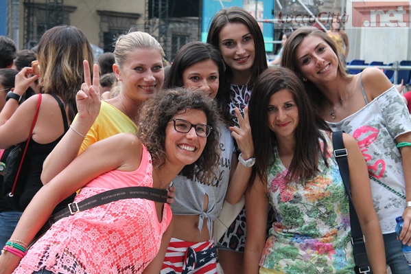 Sul palco, i cinque cantanti si sono concessi diverse gag col pubblico, e soprattutto con le ammiratrici, che più volte hanno intonato, declinata al maschile, “Sei bellissima”. Subito hanno preso la palla al balzo i “BSB” unendosi al coro delle ragazze in piazza.