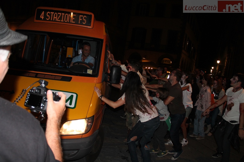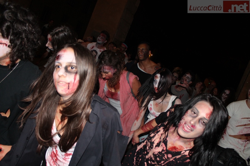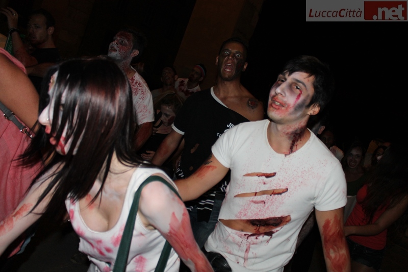 - "Era morto, finché non l'ha incontrata": zombie, tanti zombie. Un fiume di zombie si è riversato a Lucca. Un chiaro richiamo al teen-movie che ha cercato di rivoluzionare la visione dei non-morti e renderli meno spaventosi. Warm bodies (Gelateria De’ Coltelli). Tra loro un infiltrato che gli amanti si Silent Hill faranno presto a riconoscere, ovvero "Pyramid Head" (nella foto a destra)... Ma visto il tema, non stonava di certo.