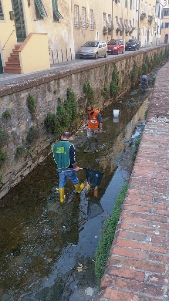 La gravità , comunque, oltre che per i numerosi pesci agonizzanti e morti, riguarda anche lo stato di abbandono e degrado in cui versa il condotto pubblico che dovrebbe essere sicuramente valorizzato e che, al contrario, si è rivelato una vera cloaca al centro di Lucca. I volontari, infatti, oltre a svariati sacchetti di plastica sommersi nella poltiglia, hanno individuato posate, orologi arrugginiti, monete, gettoni telefonici, giocattoli rotti, decine e decine di pile di ogni misura e persino una pistola rugginosa, sembra munita di un fatiscente e rotto tappo rosso e quindi di libera vendita che, comunque, è stata consegnata alle Forze dell'Ordine per eventuali ulteriori accertamenti.
