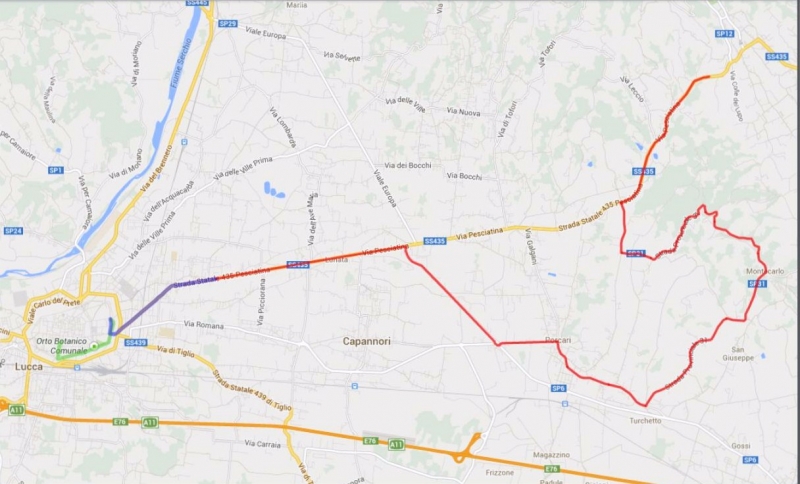 Ecco la mappa dei lavori realizzati sulle strade mondiali seguendo l’itinerario da Lucca verso est (verso Montecatini e Pistoia) che percorrerà la carovana Mondiale.