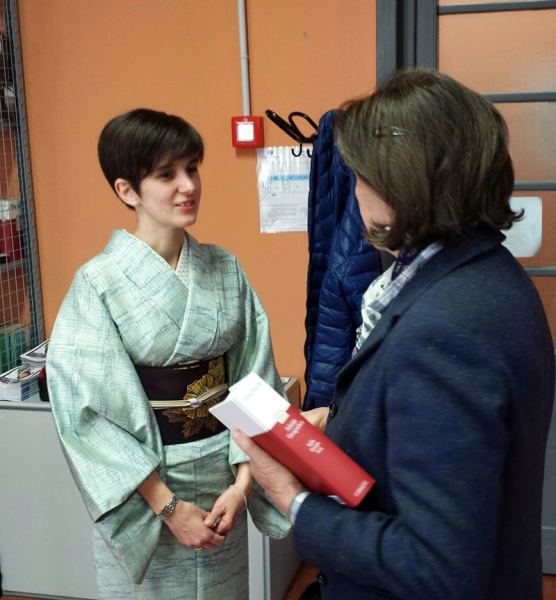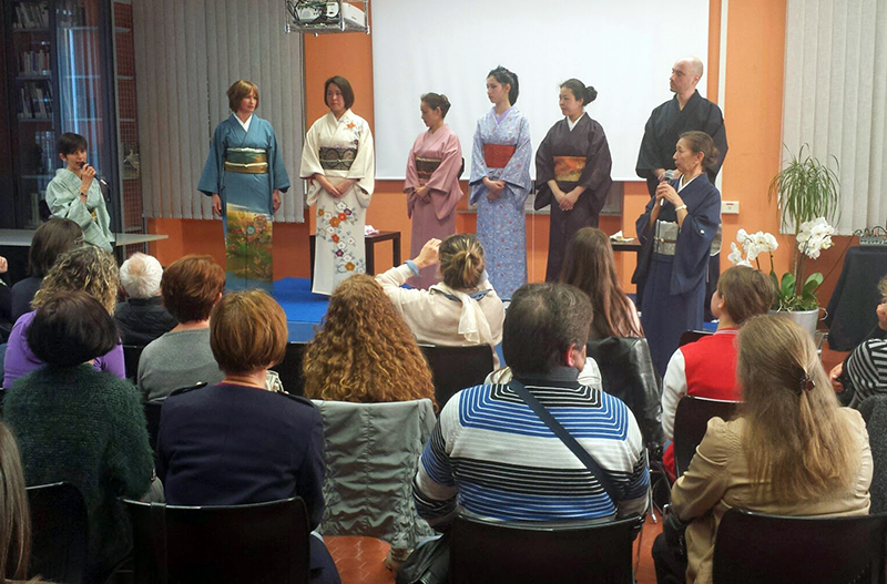 Arte e bellezza sono due chiavi di lettura che accomunano la cultura (e la lingua) italiana a quella giapponese, che sempre più spazio e sempre più appassionati trova ormai da anni nel nostro Paese, come testimonia anche il grande apprezzamento di pubblico avuto per il workshop sulla vestizione del Kimono che Scuola di Lingue Campus ha organizzato, aperto al pubblico ma rivolto in particolare agli studenti dei corsi, sabato 11 aprile con la Maestra Hitomi Matsumoto (nelle foto allegate).