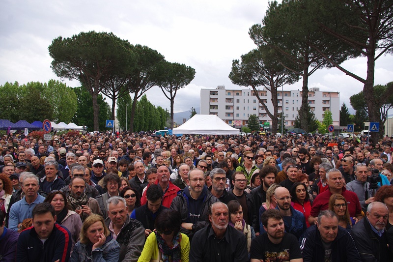 Stracolma piazza Aldo Moro ieri pomeriggio (venerdì) - erano presenti alcune migliaia di persone - per il concerto gratuito della PFM promosso in occasione del 1° maggio dal Comune con il contributo della Regione Toscana e di Toscana Energia. Lo storico gruppo musicale rock nato negli anni '70 ha suonato per circa due ore riuscendo ad entusiasmare la piazza.