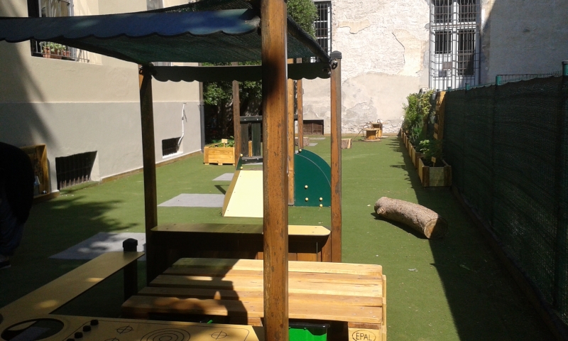 Il lavoro svolto allo Scoiattolo rientra in un progetto più ampio presentato dall’associazione “Giardini del Futuro aps” nell’ambito del bando “Lavoro, inclusione, sviluppo locale” promosso dal comune di Lucca, Caritas Diocesana e Provincia di Lucca, finanziato dalla Fondazione Cassa di Risparmio di Lucca. Il progetto di riqualificazione nasce dalla volontà di creare un ambiente di grande valore pedagogico ed educativo che sappia interpretare i bisogni dei bambini e fornire loro i materiali e gli strumenti più adatti ad un corretto e armonioso sviluppo cognitivo, emotivo e sociale. Lo spazio è pensato per essere laboratorio e officina di creatività. Inoltre la quasi totalità dei materiali utilizzati è fonte di recupero nell’ottica di promuovere una cultura della sostenibilità e della salvaguardia dell’ambiente attraverso il riuso. Sempre secondo questa impostazione per la finitura e la protezione del legno è stato utilizzato un olio di origine vegetale al posto di vernici o impregnanti di origine petrolchimica.