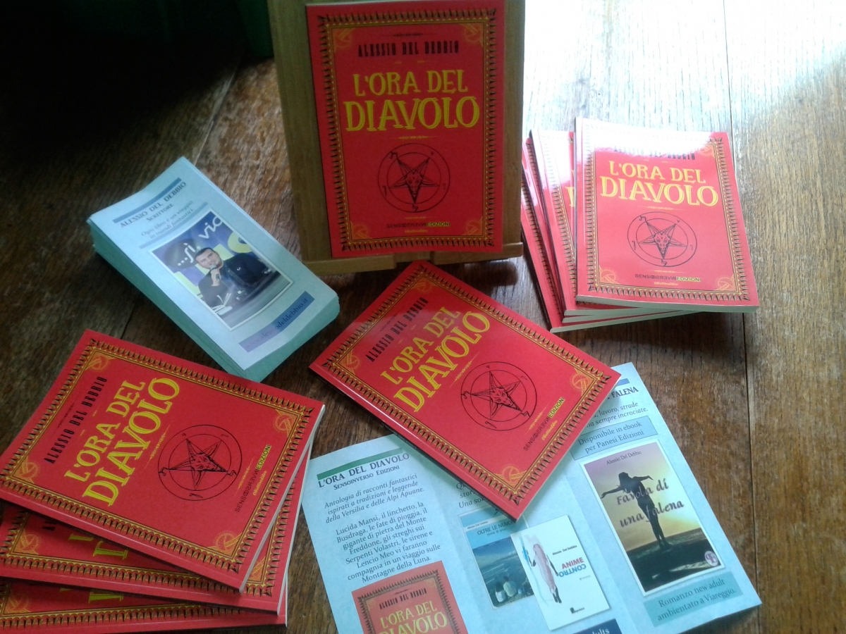 Alessio Del Debbio, scrittore viareggino appassionato di fantastico, ha vinto il terzo concorso Obiettivolibro di Sensoinverso Edizioni con “L’ora del diavolo”, un’antologia di racconti fantastici ispirati a leggende e tradizioni popolari lucchesi. Tredici racconti che conducono il lettore nei luoghi oscuri e misteriosi della Versilia, delle Apuane e della Piana di Lucca, assieme a Lucida Mansi, agli streghi, ai buffardelli, alle fate di pioggia e a tutte le creature dell’immaginario locale. Su tutto aleggia la figura del diavolo, corruttore di anime, mercante di sogni e firmatario di patti che impegnano gli uomini in cambio di qualche servizio reso loro.