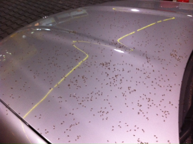 Da ormai circa una settimana infatti, e mai come oggi, nelle ore del crepuscolo, incredibili sciami di moscerini, assaltano la città . Migliaia di questi insetti, appartenenti all'ordine dei Ditteri, formando sciami tanto fitti da esser visibili a distanza di decine di metri, rendono inagibili i distributori di benzina e tutte le zone illuminate artificialmente. In pochi secondi si poggiano su persone o cose nelle vicinanze, ricoprendole completamente.