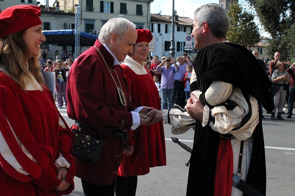 L'apertura è stata affidata alla figura storica del Gonfaloniere di Giustizia che, presa in consegna la chiave dal Targetto, ha spalancato i battenti aprendo le Mura Cittadine.