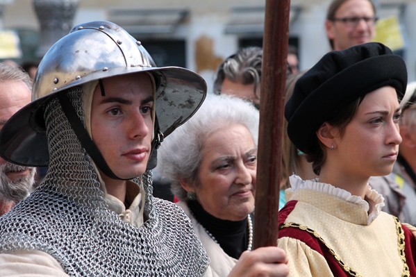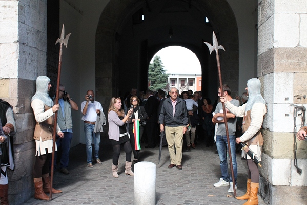 Nonostante l'impietoso meteo di sabato sera, che ha impedito gran parte delle manifestazioni in programma per i 500 anni delle Mura Cittadine, domenica mattina (6 ottobre) si è svolta sotto un caldo sole la cerimonia di apertura di Porta Santa Maria.