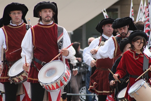 Una volta spalancate le porte, Balestrieri, Sbandieratori e Musici si sono esibiti di fronte ai cittadini in festa.