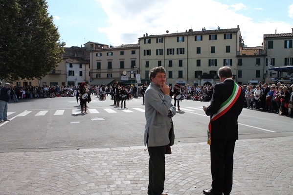 Discorso accorato, ed applaudito dai presenti, del Sindaco Tambellini: “Le nostre Mura sono simbolo della città stessa. Città che ha sempre lottato per la libertà. Libertas infatti è la parola chiave della nostra cittadina che deve essere un esempio per tutti per ciò che riguarda l'accoglienza, l'apertura culturale e il valore della libertà individuale” con chiaro riferimento all'evento che si è svolto nella giornata di domenica alle 18.00 in San Romano: la cittadinanza onoraria ai bimbi nati e cresciuti a Lucca, ma di origini straniere.