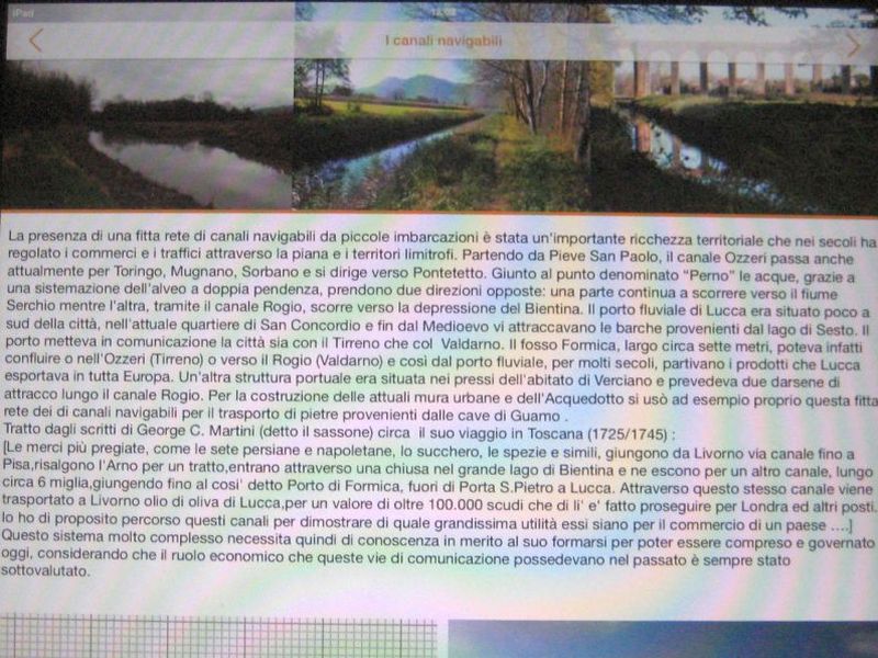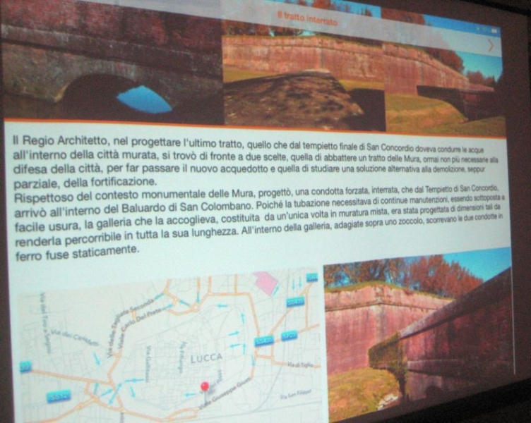 Tra le prime guide digitali su Lucca e prima app sull’acquedotto, “Delle acque e dell’agro lucchese: itinerari nel paesaggio” è stata presentata questa mattina durante un evento in sala di rappresentanza a Palazzo Ducale, alla presenza degli istituti scolastici Pertini, Nottolini/Busdraghi e ai giornalisti nel corso di una conferenza stampa cui hanno partecipato il presidente della Provincia di Lucca Stefano Baccelli, gli assessori provinciali Federica Maineri (politiche giovanili) e Francesco Bambini (turismo) e Ilaria Maffei in rappresentanza della Fondazione Banca del Monte di Lucca.