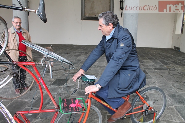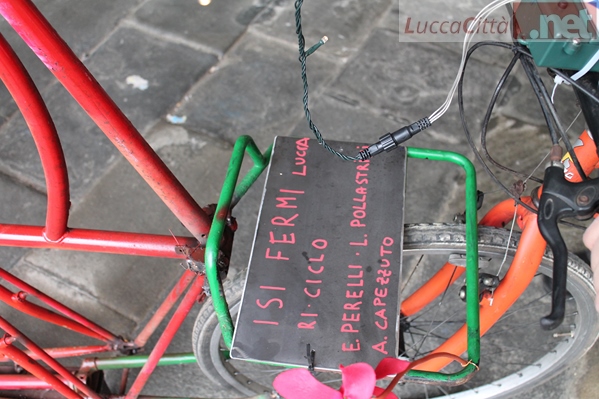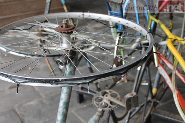 Perelli, un poliedrico artista, fabbro e psicologo si è ispirato ad un'opera cinese e, con il contributo di alcuni studenti, ha realizzato questa opera. Una sorta di filo conduttore: Lucca è la città della bicicletta; la bici è un mezzo alternativo, sano ed ecologico; quest'anno si sono tenuto proprio i Mondiali... Ecco perché un "albero" di biciclette.