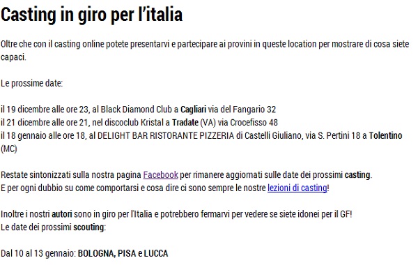 In contemporanea, la produzione effettuerà selezioni anche a Pisa e a Bologna.
