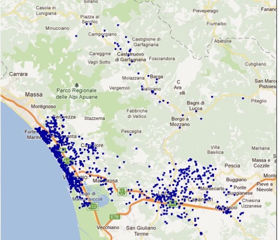Le zone maggiormente colpite, o meglio, con una maggior densità di furti della piana lucchese sono di fatto le città costiere, come evidenziato nei grafici di seguito riportati. Ed i motivi sono abbastanza ovvi: una forte presenza di seconde abitazioni e case-vacanze inabitate nei mesi invernali, meno protette da sistemi di allarme, e quindi più soggette ad esser svaligiate. Incide ovviamente anche il fatto che la densità abitativa per la medesima ragione è più bassa e quindi a parità di furti la percentuale calcolata su un campione di 100.000 abitanti risulta maggiore.