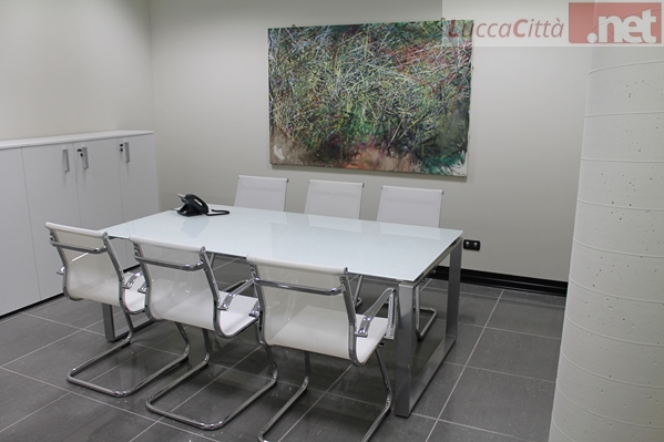 A piano terra è stata installata, quale motivo di decoro una grande tela di 3,30 metri per 2 metri intitolata’ ‘Dinamica di una città ’ del pittore capannorese Andrea Bianchi. L’opera è stata elaborata con una tecnica mista ed è il frutto di due anni di lavoro. Evidenti i richiami alle lezioni di Kokoschka, Giacometti e Balla. Alla grande tela fanno da corredo altre due opere più piccole dello stesso artista.