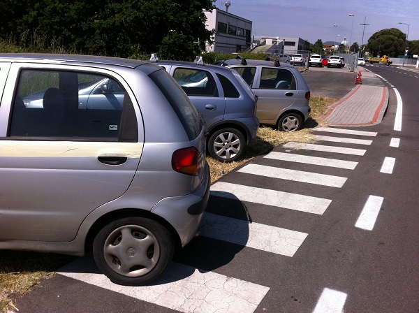 Recandosi presso il Nuovo Ospedale, infatti, è possibile imbattersi in auto in sosta sui prati, sulle rotonde, sopra il marciapiede, per strada, sulle strisce pedonali. Alla faccia degli stalli dedicati.