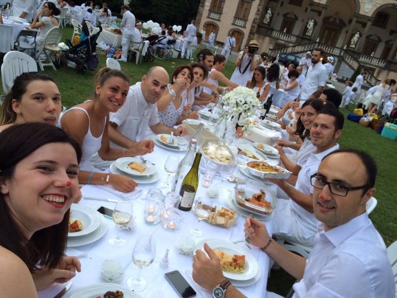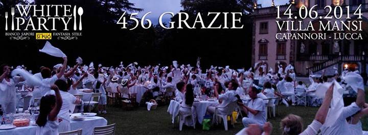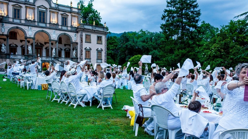 Mentre pioveva a Lucca, a Porcari, a Montecarlo, a Capannori, nel parco di Villa Mansi - grazie alla collaborazione del Comune di Capannori - si svolgeva una cena di altri tempi, una festa dell'amicizia e del sorriso. Un evento dove i partecipanti non sono semplici spettatori, ma i veri ed unici protagonisti di uno spettacolo. Tutti vestiti completamente di bianco, ognuno con le proprie sedie e il proprio tavolo imbandito. Menù preparato a casa.