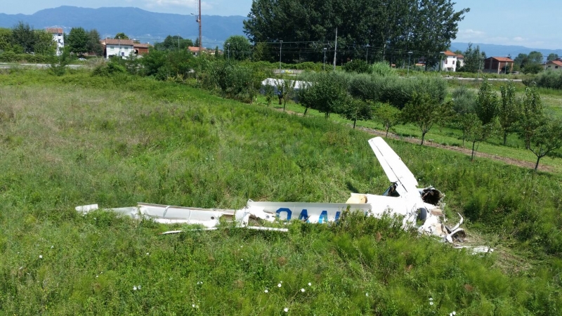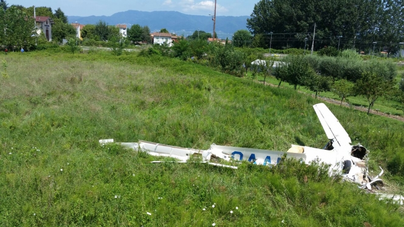 L'aereo è caduto in un campo fra le case di via dell' Aeroporto. Sul posto allertati dagli abitanti della zona e da alcune persone che stavano partecipando ad una gara cinofila nel vicino quagliodromo, sono subito arrivati i soccorritori del 118, i carabinieri e i Vigili del Fuoco.