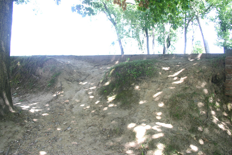 I parapetti che costeggiano il perimetro esterno della passeggiata e dei baluardi troppo spesso, per incuria e assoluta mancanza di manutenzione continua, non sono più PARA-PETTI, ma si sono trasformati in semplici cigli erbosi. Questo si verifica ove i parapetti sono costituiti solo da terra sul loro fronte interno. Eventi atmosferici e la frequentazione continua dell’uomo hanno fatto sì che questo fronte terrato molto spesso sia crollato e che la terra così caduta abbia comportato un innalzamento del piano di calpestio formando una sorta di rampe che finiscono per invitare e favorire la salita sul piano in quota degli stessi parapetti. La cosa è principalmente evidente in quasi tutti i baluardi e lungo le cortine che dal Baluardo S. Martino a nord vanno verso est.