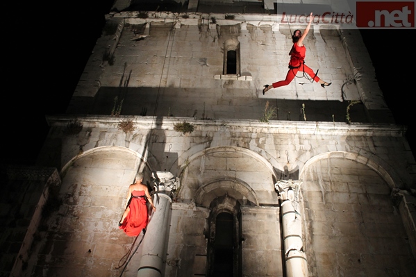 Fiore all'occhiello di questa terza edizione, lo spettacolo della compagnia veneta “Il Posto” (QUI articolo e foto) che ha regalato uno show emozionante alla città fatto di luci, suoni, musica e danza su un palco decisamente fuori dal normale: il campanile di San Michele dove due meravigliose ballerine in abito rosso hanno danzato con grazia sfidando la legge di gravità ammaliando il pubblico presente.