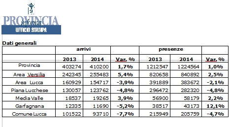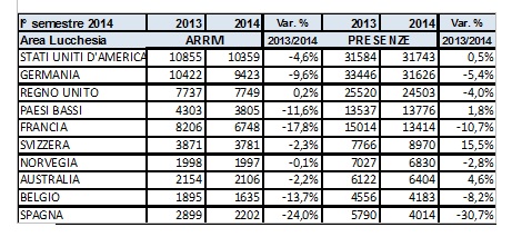 Un segno negativo che, scorporato dal contesto complessivo, è particolarmente sensibile sul comune di Lucca dove il passivo è di -7,7% di arrivi e di -4,7% di presenze nel primo semestre 2014.