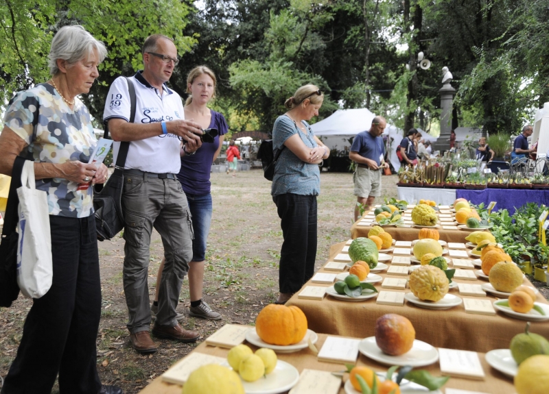 Atmosfere internazionali lungo tutto il percorso di visita, se non altro per il fatto che le piante non conoscono altri confini che quelli climatici e chi le coltiva ha lo spirito del globe trotter. Ha destato molto interesse per esempio la collezione di Brachychiton, alberi e arbusti dell’Australia e della Nuova Guinea dalla spettacolare fioritura, considerati tra i più antichi che si conoscano: sono stati rinvenuti fossili che risalgono a 50 milioni di anni fa. Mirco Bagaloni del vivaio anconetano Tropico del Conero ha fatto nascere personalmente una specie dai semi ottenuti dopo lunghe ricerche sul mercato europeo e con rocambolesche avventure è riuscito a importare direttamente dall’Australia 5 ibridi nuovi per l’Europa. Bagaloni, che ha contribuito con un capitolo al libro “Piante cibo del mondo” presentato oggi come novità libraria di Murabilia e in vendita alle casse della manifestzione, in novembre abbandonerà momentaneamente l’attività di vivaio per coronare la sua storia d’amore con una ragazza di Managua.
