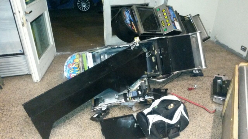 Al loro arrivo il bar era totalmente al buio, ma la porta di ingresso, aperta, era stata forzata; si sono così introdotti all'interno e, una volta accese le torce, si sono trovati davanti i tre ladri che, non avendo udito l'avvicinarsi dei poliziotti, erano ancora intenti a “vivisezionare” le macchinette videopoker per asportare le monete contenutevi.