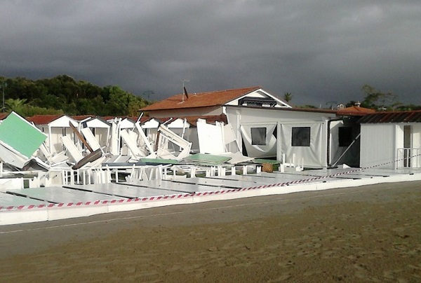 Danni, seppur di minor rilievo anche dagli stabilimenti vicini, dove alcune tende strappate dalla furia del vento.
