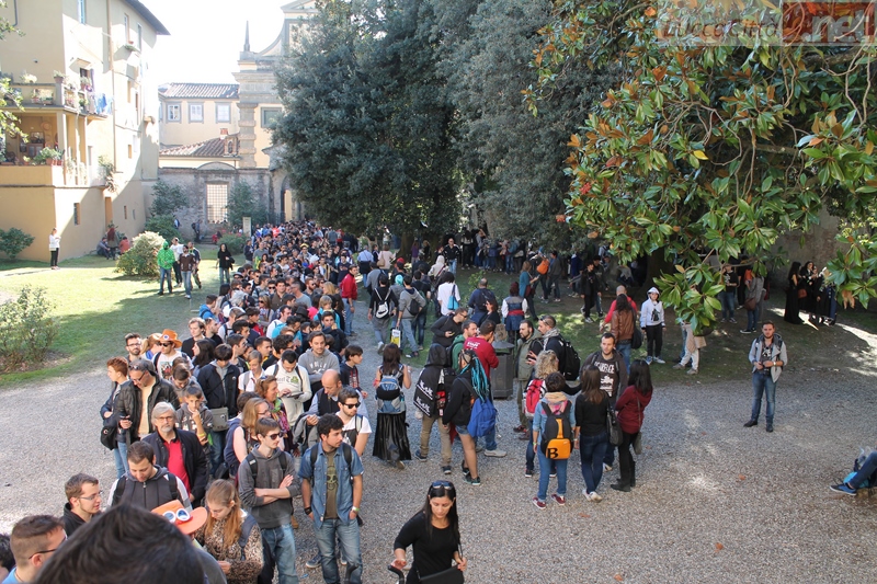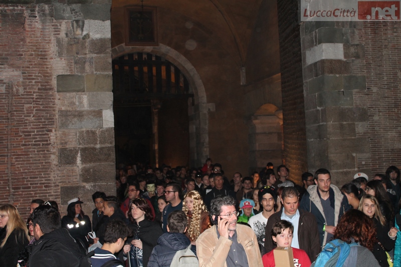 La calca che ha animato Lucca per tutta la giornata si è riversata verso la stazione dove è stato necessario anche bloccare ed arginare gli ingressi temporaneamente perché non c'era più posto né sui treni né sulle banchine di attesa.