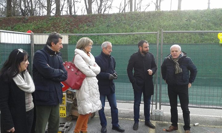 Partiti i lavori per la realizzazione di un’altra isola ecologica a scomparsa nel centro storico, precisamente in via di Piaggia. Il cantiere è stato aperto lunedì mattina (15 gennaio) ed entro fine febbraio la struttura sarà operativa per raccogliere i rifiuti differenziati. Sarà scavata una buca di forma rettangolare di 6,40 metri di lunghezza per 3,10 metri di larghezza e profonda 2,30 metri in cui inserire una struttura adatta al conferimento dei rifiuti differenziati: organico, multimateriale, carta e materiali non differenziati. Per fare il punto della situazione sull’avvio dell’intervento questa mattina si sono dati appuntamento al cantiere il Comune di Lucca, Sistema Ambiente SpA e i tecnici che seguiranno i lavori. Erano presenti l’assessore all’Ambiente Francesco Raspini, il presidente di Sistema Ambiente SpA Roberto Paolini, Marco Cecconi del CdA di Sistema Ambiente, l’archeologa Elisabetta Abela, il geologo Marco Trivellini e l’architetto Simonetta Lencioni.