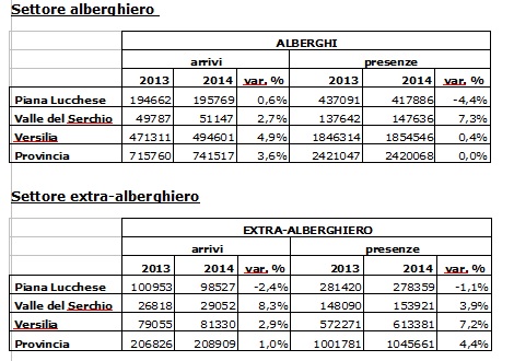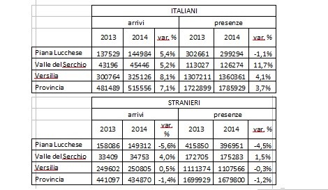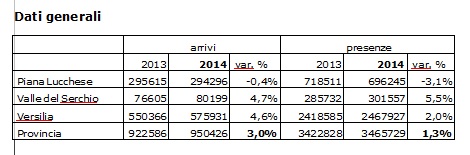 Il report consuntivo 2014 sui flussi turistici in provincia di Lucca fa segnare una crescita sia nel numero di arrivi che di presenze sul territorio, confermando il trend evidenziato dalle precedenti rilevazioni dell’Ufficio turistico della Provincia di Lucca.