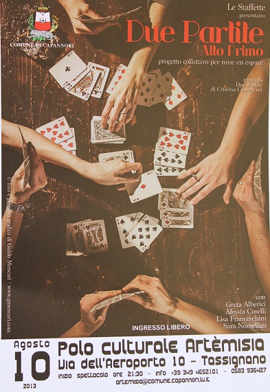 “Due partite - Atto primo” progetto collettivo per mise en espace tratto da "Due partite" di Cristina Comencini è lo spettacolo, o meglio la lettura scenica, in programma sabato 10 agosto alle 21.00 in corte Mattaccio al polo culturale Artémisia di Tassignano.