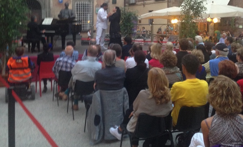 Tutto esaurito per il recital dedicato a Tosca di ieri pomeriggio: riscaldata dal tanto atteso sole del settembre lucchese, piazza Cittadella era affollata di un pubblico attento ed entusiasta che ha molto apprezzato l’ultima delle Cartoline pucciniane realizzate da Fondazione Giacomo Puccini e Teatro del Giglio nell’ambito del progetto “Follow Puccini in Lucca”. Rossana Cardia, Mirko Matarazzo e Pedro Carrillo accompagnati al pianoforte dal Maestro Massimo Morelli, hanno interpretato Tosca, Cavaradossi e Scarpia con intensità e passione, emozionando tutti i presenti con le intramontabili arie di Tosca, capolavoro pucciniano di amore e morte: grande l’attenzione da parte del pubblico e dei passanti, richiamati dalle sonorità pucciniane, che hanno gremito la piazza proprio sotto lo sguardo del Maestro accomodato in poltrona, creando un’atmosfera vibrante e partecipata, raccolta attorno a Puccini, alla sua musica e ai suoi luoghi.