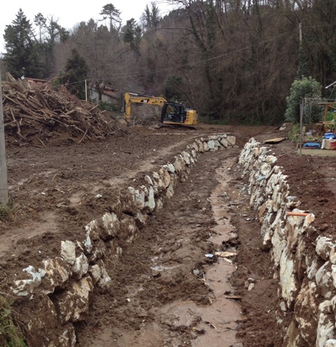 Gli uomini e i mezzi sono adesso in azione sul Solco di Carbonaia, dove rimarranno ad operare per altre circa due settimane per realizzare due scogliere di protezione della sponda, lunghe circa quaranta metri l’una; successivamente il cantiere si sposterà sul Rio di Cerreto, dove in programma ci sono scogliere e scavi che arriveranno almeno fino alla via provinciale, con l’impegno di valutare la fattibilità di ampliare la rimozione del materiale accumulato addirittura sino alla confluenza col Rio Freddana. In fase di conclusione è anche l’intervento sul Rio di Metataccio, dove è già terminata la rimozione del fango e dell’enorme quantità della legna attraversata e si provvederà adesso a compiere una scogliera. Tanti anche gli altri punti dove i cantieri sono in fase conclusiva: tra questi, il Rio di Vinciola (terminata la pulizia da terreno accumulato e alberi attraversati) e il Solco dei Colli (ripristinato un muretto di contenimento in sinistra idraulica con riprofilatura e rimozione di materiale di risulta).