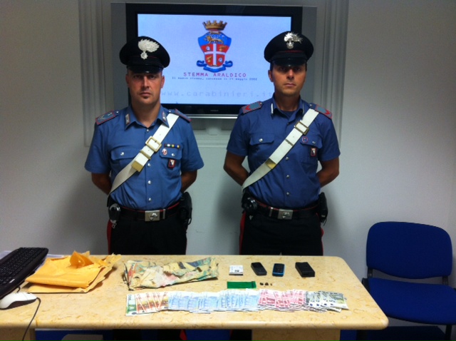 A seguito di perquisizione personale e domiciliare, è stato trovato in possesso di vari pezzetti di hashish, cellulari e schede telefoniche e di 1.240 euro costituite da banconote di diverso taglio (presumibile provento di attività di spaccio) nascoste all’interno della federa di un cuscino di un divano nel salotto di casa.