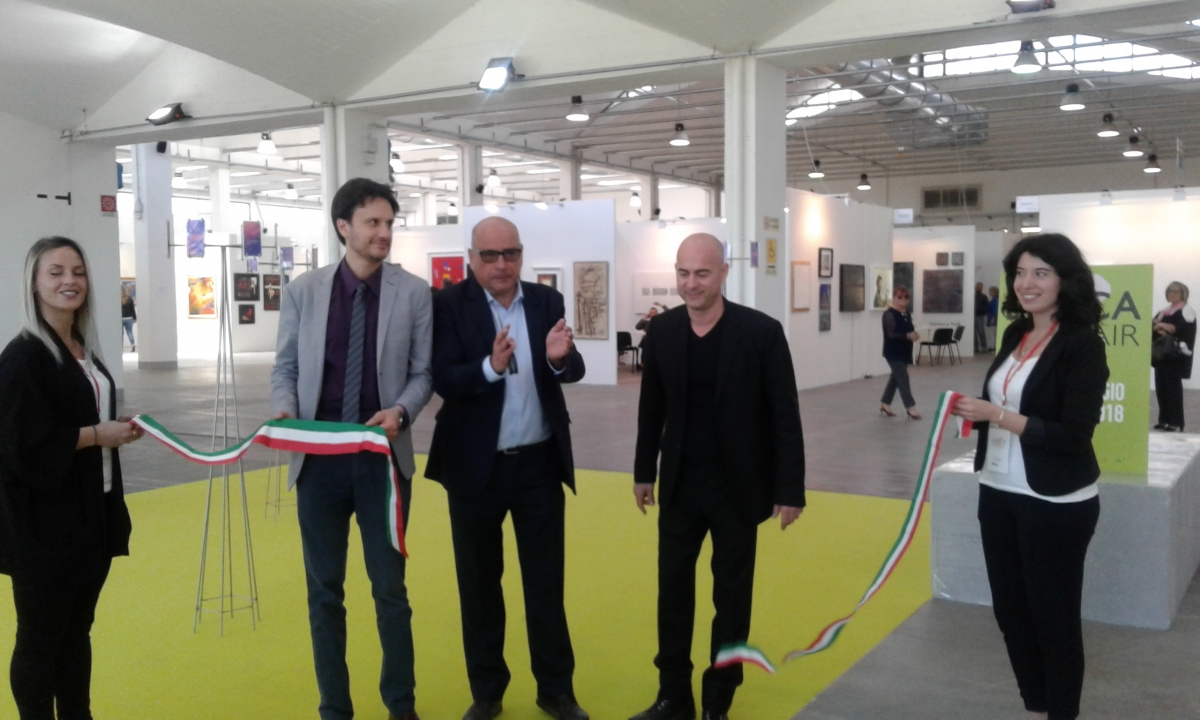 A tagliare il nastro Paolo Batoni, direttore di Lucca Art Fair, l'assessore comunale alla Cultura e al Turismo, Stefano Ragghianti ed Emanuele Vietina, direttore generale di Lucca Crea srl.