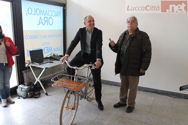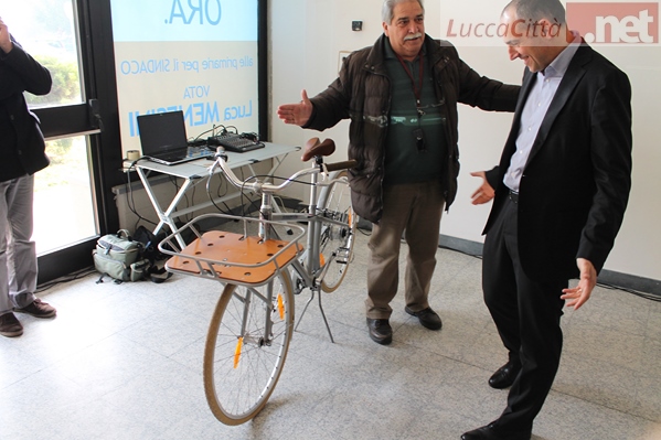Poco prima che l'attuale Vicesindaco potesse iniziare il suo discorso, gli è stata regalata una bicicletta, con un duplice ironico e goliardico significato: Menesini è l'esempio della mobilità alternativa e salutare, appunto, la bicicletta.