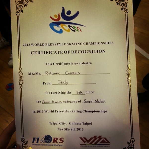 Si è concluso il campionato del mondo di pattinaggio in-linea freestyle Taipei 2013 con grande soddisfazione per la nazionale azzurra che si dimostra la più forte di tutti nella specialità di velocità Speed Slalom, consacrando Davide Piacentini Campione del Mondo 2013.