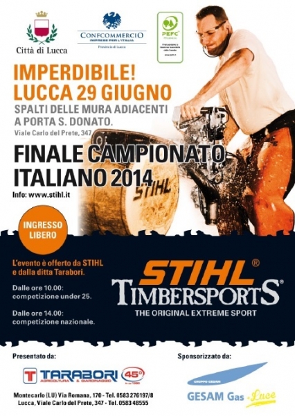 Con il patrocinio di Comune e Confcommercio, si terrà a Lucca la gara valida per l'accesso ai Mondiali di Stihl Timbersports: sei discipline diverse in cui gli atleti si sfidano a suon di ascia, sega e motosega secondo le tecniche tipiche dei boscaioli americani.