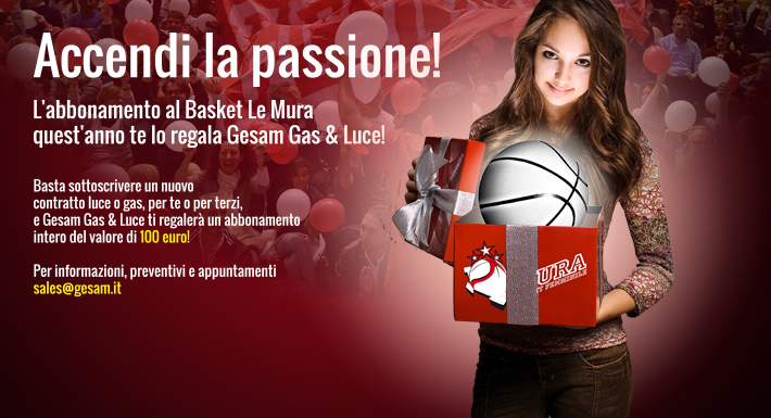 Il main sponsor del Basket Le Mura dimostra ancora una volta la propria vicinanza alla squadra e a tutto il pubblico lucchese, offrendo gratuitamente l'abbonamento alla stagione 2014/2015 a tutti coloro che sottoscriveranno un nuovo contratto di fornitura ENERGIA o GAS proprio con Gesam, per queste tipologie: