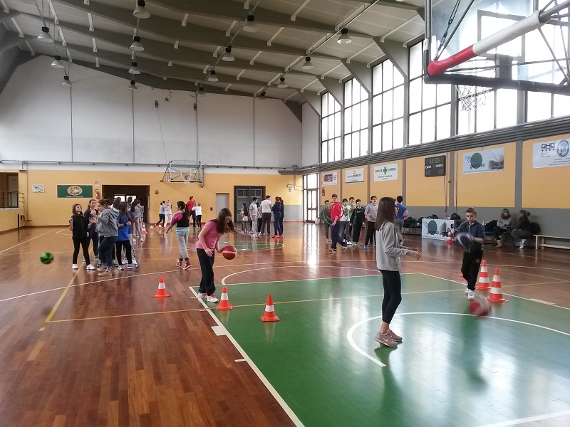 Lezione di Basket dalle giocatrici Le Mura per gli alunni della scuola media Da Vinci