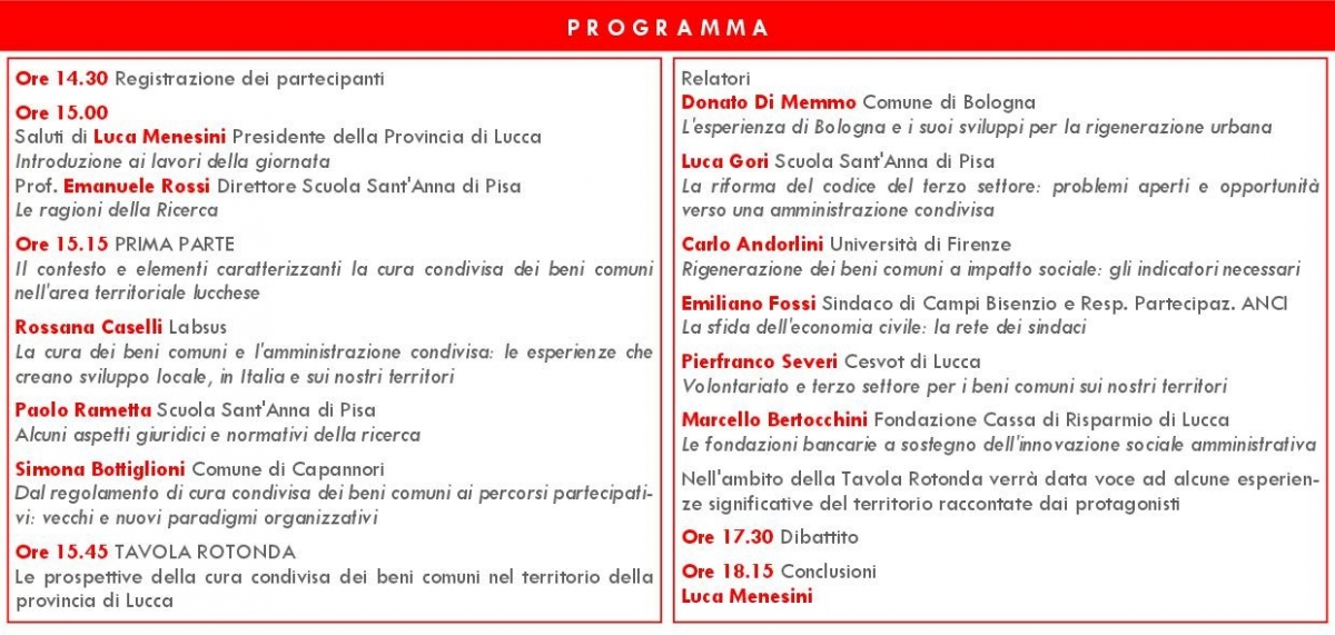 Il programma completo del convegno è consultabile sul sito web www.provincia.lucca.it
