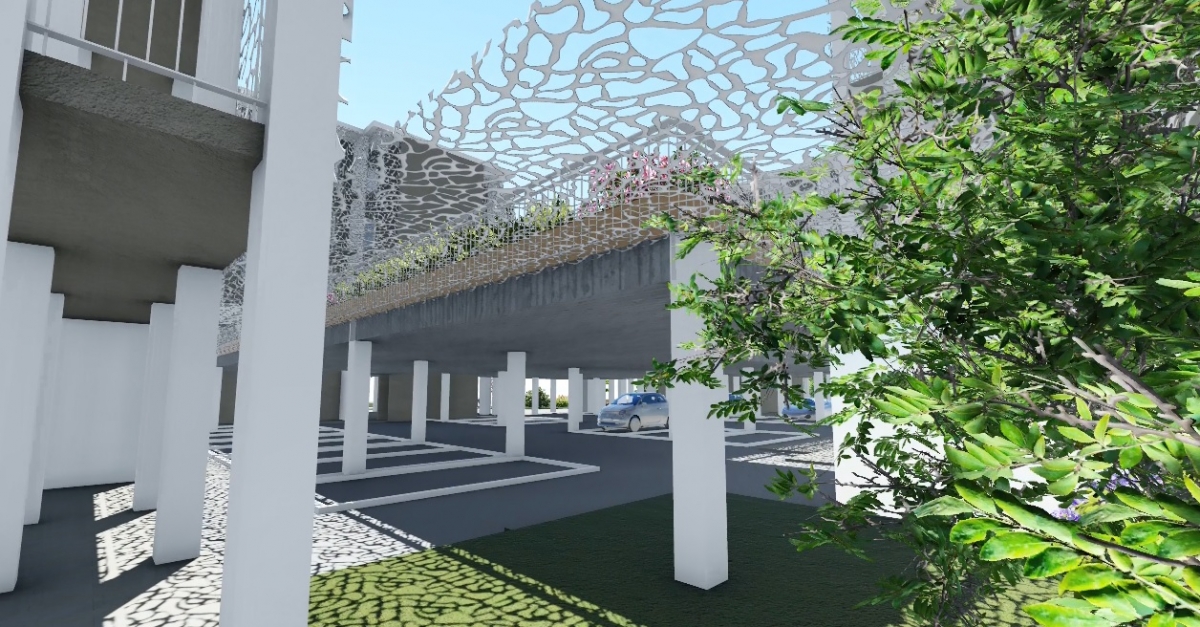 Gli spazi esterni saranno completamente ridisegnati. Sarà riorganizzato il sistema di sosta, verrà realizzata una piazza sopraelevata che consentirà di separare i percorsi carrabili da quelli pedonali all'interno dell'isolato e verranno realizzati spazi di aggregazione con gazebo, tavoli, sedute che possano adattarsi all'utilizzo diversificato in relazione alla varie fasce di età degli abitanti.
