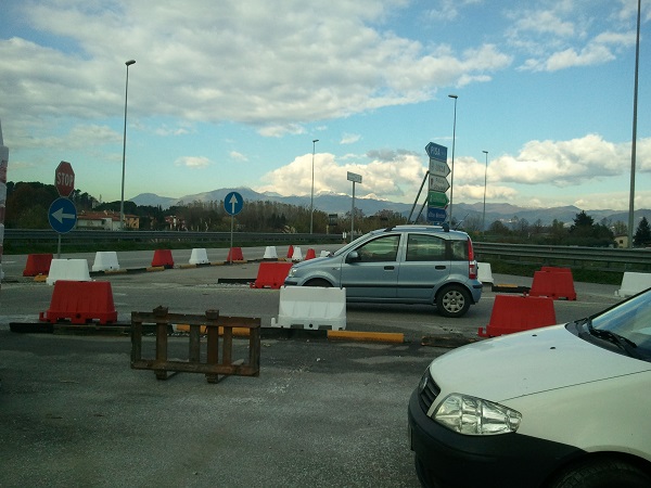 Oggi è stato installato il new jersey che servirà a testare per qualche giorno la nuova modalità di circolazione. Tra qualche giorno si inizierà a costruire sia la circonferenza della rotatoria sia gli spartitraffico. E’ inoltre in fase di studio l’illuminazione: al vaglio le possibilità di illuminare la rotatoria attraverso una torre-faro o attraverso dei pali posti sul bordo della rotonda.